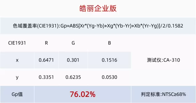 皓丽企业版和maxhub V6新锐版色域测试结果