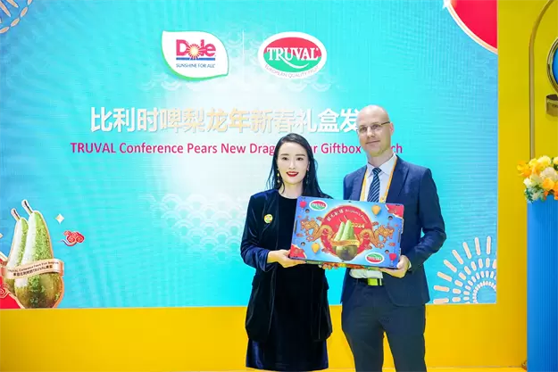 2023年适逢TRUVAL比利时啤梨入华12周年,“12”象征着一个循环,寓意和谐与繁荣。本届进博会期间,都乐携手BFV共同举办“比利时啤梨入华12周年庆典暨龙年新春礼盒发布仪式”。BFV(比利时水果山谷协会)是比利时最大的果农合作社,旗下品牌TRUVAL正是都乐目前力推的啤梨品牌。TRUVAL是英文“True Value”的缩写,意指“真正的价值”,仅有不到四分之一的高品质啤梨才会被列入TRUVAL名下。合作12年以来,BFV保证供应链高效完善,竭力将新鲜的啤梨从产地送到中国消费者购物篮。都乐中国特别为BFV颁发了“都乐卓越贡献合作伙伴奖”,以表彰BFV12年来与都乐中国的精诚合作,并期待下一个硕果累累的12年。
