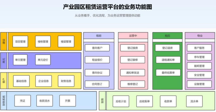 璞华易商作为产业园区租赁运营平台,集客户管理、房源管理、租赁合同、财务应收、物业管理等一站式租赁业务管理模式,为广大产业园提供房屋租赁经营管理、房屋维修管理、房屋产权管理、招商管理以及资产的管理,实现精细化管理,全面提升产业园运营管理绩效。
