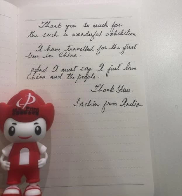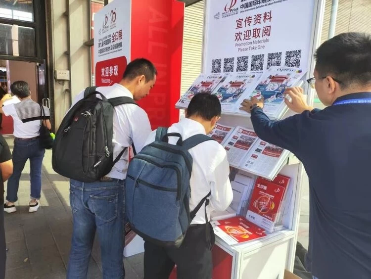在第九届全印展现场,观众可以在入口大厅、主通道连廊轻松拿到中英文参观指南、5个主题线路分类指南、每日“全印展通讯”等丰富的导览资料,并到处可见官方“二维码矩阵”,包括小程序、电子地图、电子参观指南、云端相册、直播嘉年华、国际国内官方社交媒体入口等,360度无死角导览。