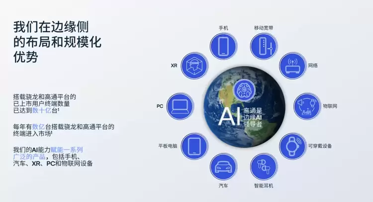 从 5G 商用前的历史性阶段,也就是 2018 年,高通就已经预见 5G+AI 会给未来智能手机带来革命性的变化,所以它在那会儿就把 AI 提升到了战略级高度。