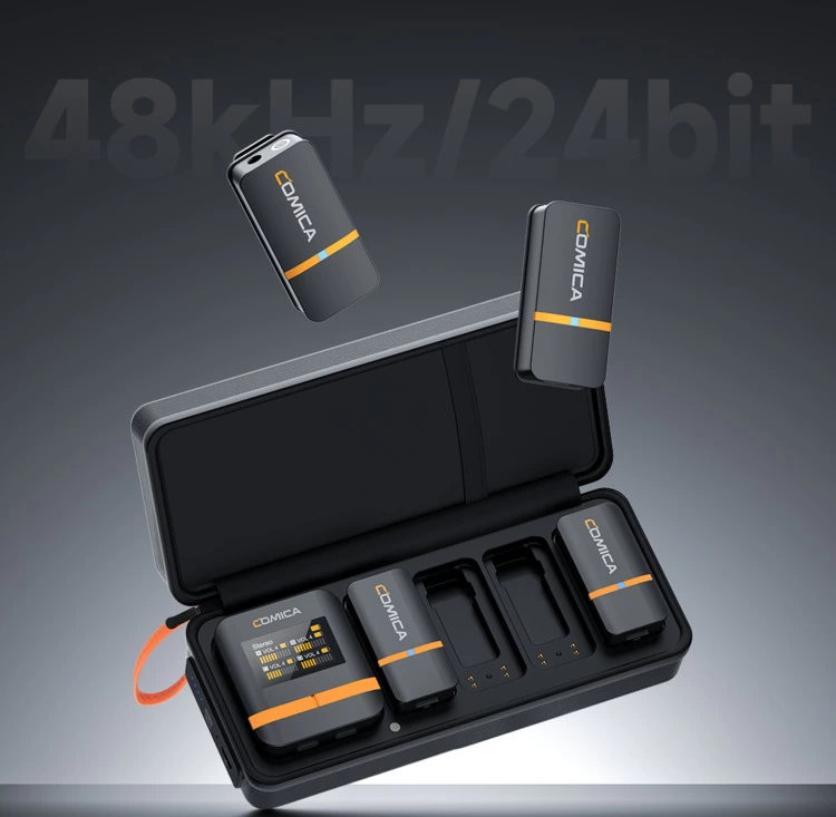 同时,Vimo Q的接收器还搭载了高清显示屏,可以呈现音频动态条、电量、音频模式等状态。这使得用户可以更直观地掌握麦克风的工作状态,并能及时调整录制参数。在声音传输方面,Vimo Q的表现也十分出色。其低音频延迟小于20ms,传输距离高达200m。这种几乎人耳无法感知的延迟和无障碍情况下的稳定传输距离都极大地保障了声音传输的高效性。