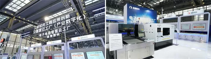 在工业软件生态大会现场,造物数科打造的“应龙造物”品牌,作为电子电路产业生态平台,邀请了生态链优秀合作伙伴共同参展,主要包括大族数控、东方宇之光、劲鑫科技、善思光电等,围绕“电子电路智慧云工厂”向行业合作伙伴展示智慧生产、智能检测等场景的最新成果。