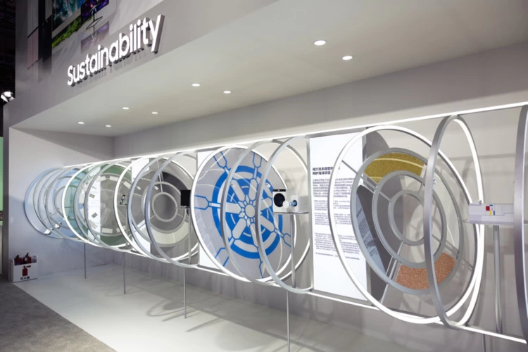 从废旧渔网、到废旧塑料瓶、废弃玻璃……这些展品背后,我们看到了三星近年来为环境可持续做出的努力与成果。