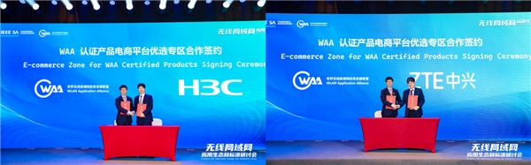 为了让WAA认证的产品更容易触达用户,为用户提供了更便捷的购买渠道,需要让用户在电商平台上能更快搜索和找到认证过的产品。具体办法就是在电商平台中设立“WAA认证产品优选专区”,以便用户快速购买WAA认证产品。为此,WAA和一系列具有自有销售平台和能够触达第三方电商平台的解决方案提供者签订了电商平台优选专区MOU,包括中兴通讯股份有限公司和新华三技术有限公司。