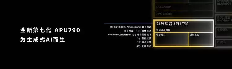不仅如此,APU 790还内置了首款硬件级生成式AI引擎,带来又快又安全的边缘AI计算,深度适配Transformer模型进行算子加速,处理速度是上一代的8倍,AI生成图片快到只需要1秒。