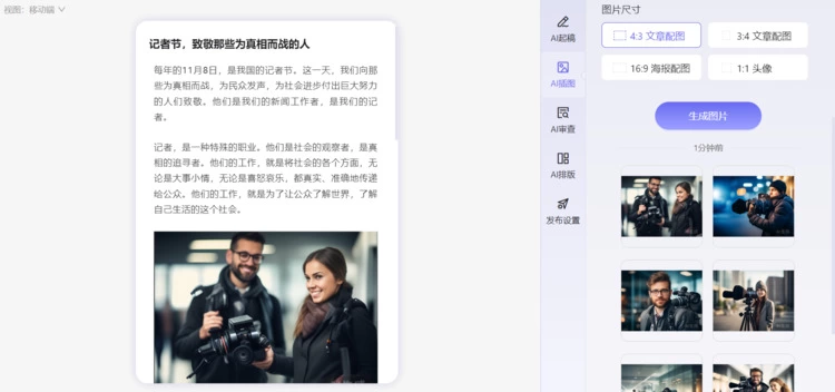 稿件撰写完毕后,星火内容运营大师可以根据内容进行推荐配图,并且一键完成排版和分发,让新闻工作者在短时间内将新闻报道发布到各大平台上,让更多的人看到他们的努力和成果。最后发布后的数据分析功能还可以帮助新闻工作者了解读者的阅读习惯和喜好,从而更好地满足读者的需求。