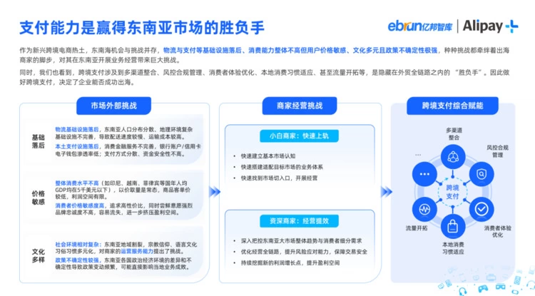 作为新兴跨境电商热土,东南海机会与挑战并存,物流与支付等基础设施落后、消费能力整体不高但用户价格敏感、文化多元且政策不确定性极强,种种挑战都牵绊着出海商家的脚步,对其在东南亚开展业务经营带来巨大挑战。