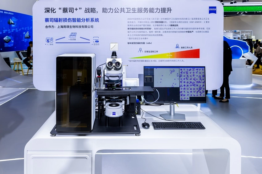 2023年11月6日,在第六届中国国际进口博览会(简称“进博会”)上,“蔡司+”战略实践新成果——蔡司辐射损伤智能分析系统迎来首展。该系统延续“蔡司+”战略以光学技术赋能中国合作伙伴的初衷,将基于职业病防治工作对精准、高效的要求提供辐射损伤评估支持,助力临床诊断、研究工作的高效开展,为国民生命健康保驾护航。