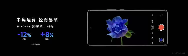 实测成绩也证明了这点:录制4K 60FPS 视频属于中负载场景,天玑9300功耗可降低12%。