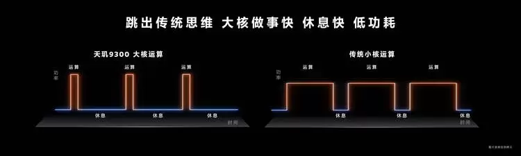 天玑9300则跳出传统,从“超大核、大核、小核”的组合,开创性地设计了“4个超大核和4个大核”的创新全大核CPU架构。而且,天玑9300的全大核和大核性能更强,通过更精准的调度策略,效率更高,从而可以更快完成运算,更早“休息”,实现性能和能效的提升。