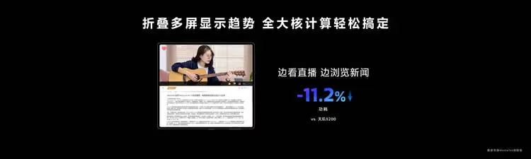 折叠屏手机的多屏显示对于全大核架构来说也是小菜一碟。比如边看直播,边浏览新闻时,天玑9300功耗可下降约11%。