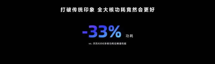 全大核CPU中低负载时低频运行,功耗更低且效率更高,毕竟大马才能拉大车,拉小车更省力,但小马只能拉小车,拉大车就是加倍费力。所以天玑9300的日常功耗表现同样惊艳,像日常浏览、刷短视频、录制视频、播放视频还有开启Wi-Fi热点这些日常使用场景功耗最多可以降低30%。