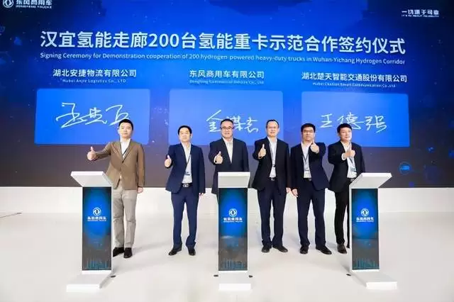 谋定而后动,兴一域而利天下。在发布会中,东风商用车有限公司、湖北楚天智能交通股份有限公司(下简称“楚天高速”)、湖北安捷物流有限公司(下简称“安捷物流”)签订汉宜氢能走廊200台氢能重卡示范合作项目。
