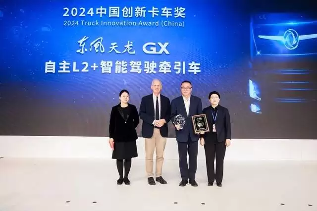 荣誉颁奖:东风天龙GX自主L2+级智能驾驶牵引车获“2024中国创新卡车”奖