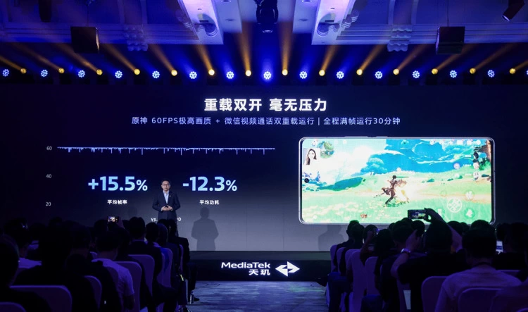 在高负载和多应用并行场景,全大核8个高性能核心协同计算,把每一份性能都用在“刀刃上”,超级强悍的性能和能效让天玑9300应对自如。在实测中,搭载天玑9300的终端在游玩最高画质《原神》30分钟的同时进行微信视频通话,平均帧率提升超过15%,功耗却降低约12%,这简直就是能效魔法。