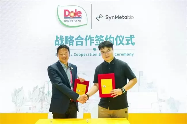都乐中国副总裁兼总经理杨振宇与贻如生物合伙人及生产负责人薛睿轩现场签约