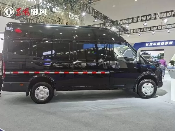 东风御风V9E外观造型采用 “国韵雅致”设计风格,大气吸睛。除展会上的长轴高顶厢货版外,东风御风V9E还可提供不同顶高、轴距多种选择,未来将覆盖客运通勤、专业物流和细分领域专用车型。