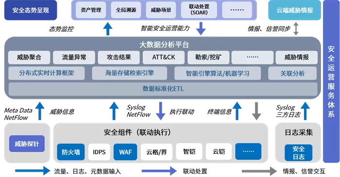 山石网科智源智能安全运营系统是全息数据驱动的AI 分析运营系统,由分析平台与多种安全组件共同构成,旨在完成海量数据的采集与分析,并提供安全态势呈现、全网资产梳理、策略集中管理、智能威胁分析、深度溯源取证和联动响应等功能,解决用户所面临的监控盲区、未知威胁和低效运维等问题。