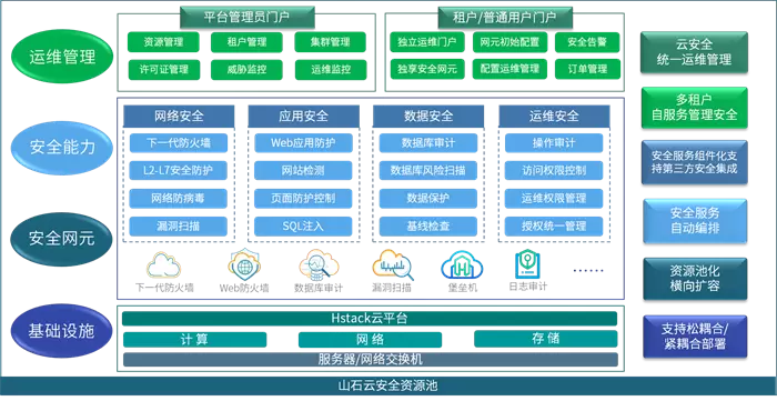山石云·池是山石网科根据多年对用户云计算场景下安全问题的理解和研究,精心研发的一套具有独特性的云安全资源池方案,可充分满足用户在不同IT环境下的安全需求。该方案具备云计算安全统一管理、安全防护按需自动化编排、安全资源弹性伸缩及统一管理多租户等功能,不仅为用户提供了最佳的云环境安全解决方案,还进一步帮助用户在云上一站式快速满足等保合规需求。