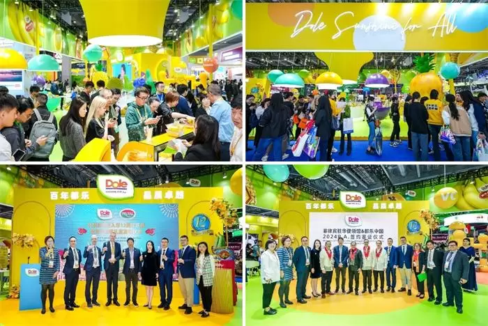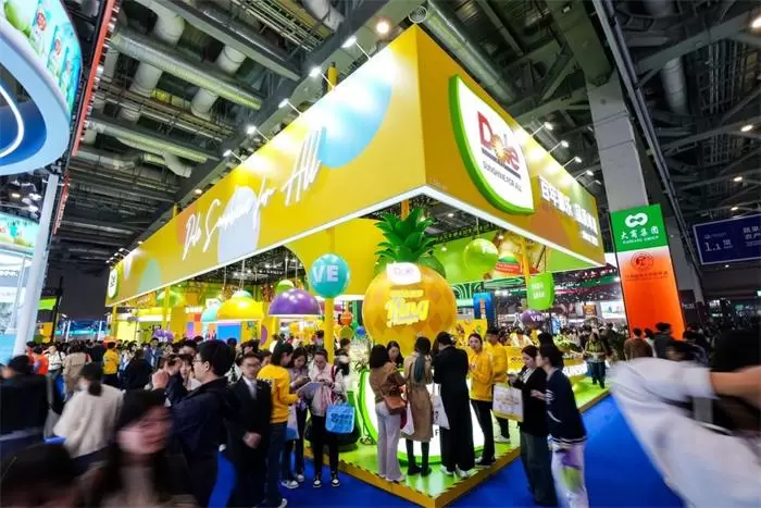 第六届中国国际进口博览会以“新时代共享未来”为主题,于2023年11月5日至10日在国家会展中心(上海)举行。全球百年果蔬品牌都乐作为连续六年参展的进博会“全勤生”,在今年进一步扩大展台面积,携都乐超甜蕉、金菠萝、牛油果、蓝莓、泰国香水椰在内的超70款明星果蔬,打造“果力无限”阳光展台。现场人气爆棚,参展商和观众络绎不绝,展现出水果行业超强领导者实力。