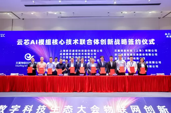 会上,天翼物联还与多家产业合作伙伴达成云芯AI模组技术联合创新战略合作、绿色健康照明联盟战略合作。