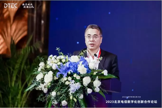 论坛期间,北京电信相关板块负责人以及天翼云、华为、北控数字科技、中化信息技术、智谱华章、中国电子信息产业发展研究院、中电科等合作伙伴就云计算、人工智能、数字化转型等方面的共创共建分别发表了主题演讲。