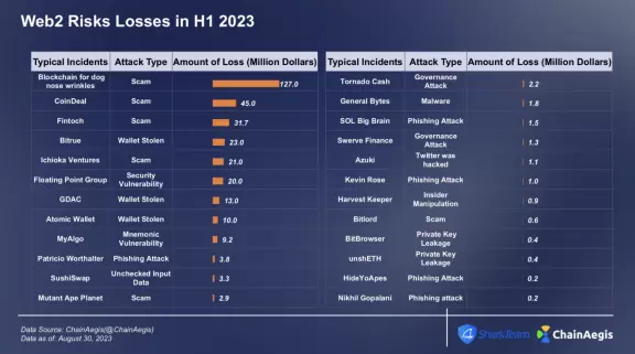 Web2类型的安全事件也呈现高速增长的趋势,这类钓鱼攻击、社会工程学等黑客攻击手法在Web2时代已非常成熟,Web3项目方和机构容易忽视,这类安全事件通常会窃取钱包账户授权或直接窃取助记词、私钥,盗取用户加密资产。