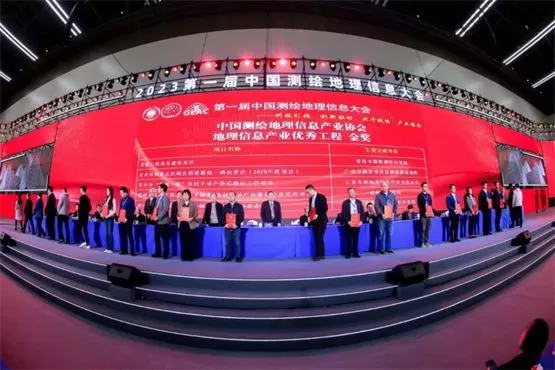 大会上表彰了2023年测绘科学技术奖、2023地理信息科技进步奖、2023地理信息产业优秀工程奖等多项重要奖项。其中,苍穹数码技术股份有限公司再次荣获“中国地理信息产业百强企业”。