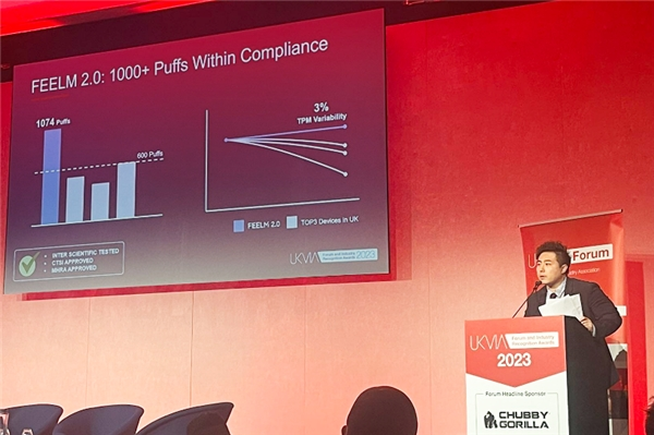 思摩尔高级战略总监Rex Zhang受邀在UKVIA论坛上发表演讲,针对目前英国监管、媒体、大众关注的热点话题,从技术创新出发,满足监管与消费者的双重需求,推出英国一次性千口解决方案:FEELM 2.0。该方案为客户带来合规下的惊喜产品。