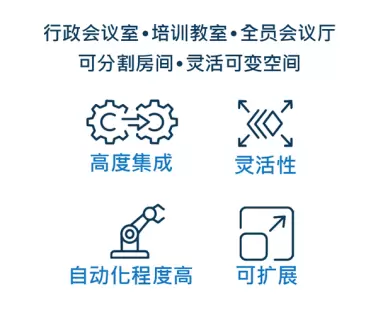 随着办公环境向混合方式转变,很多公司开始投资并打造新的办公空间,增加了以团队为中心的互动与创新的功能,以及大型聚会空间用来举办客户活动和内部团建等。传统的小型、中型和大型会议室空间无法在混合办公环境中提供高效、公平和吸引人的使用体验。公司需要创造一个为所有会议参与者提供更好体验和更高使用价值的环境,或称之为“高规格空间”。