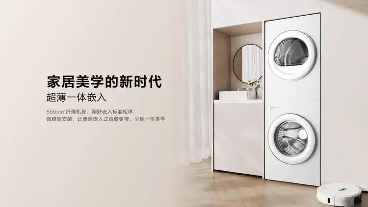 首先,双子舱 T10 洗衣机实现了设计一体化,轻松满足用户家居场景嵌入安装的使用需求。555mm的纤薄机身,辅以“一个电源、一个进水口、一个排水口、无排水盒”的集成化水电设计方案,被誉为是市面上最容易嵌入的洗烘产品。在家居场景下,无论置放于阳台柜,还是厨房、洗衣房等不同场景,都可轻松融入整体空间。