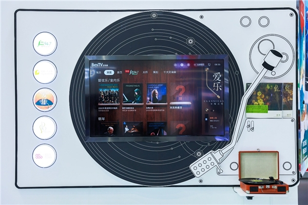 伴随着理查·施特劳斯的《家庭交响曲》响起,悠扬动人的旋律配以黑胶唱片机柔和细腻、略带颗粒的质感,令现场观众驻足停留。定位为“大屏古典音乐档案馆”的BesTV爱乐首次登陆数字科技生态展。这是百视通倾心打造的一款古典音乐新媒体产品,世界顶尖乐团柏林爱乐乐团系列、经久不衰的芭蕾舞剧《胡桃夹子》、享誉百年的莎士比亚戏剧《第十二夜》等海外优质艺术现场影音,通过电视大屏的演绎传递,与观众“云端”相会。
