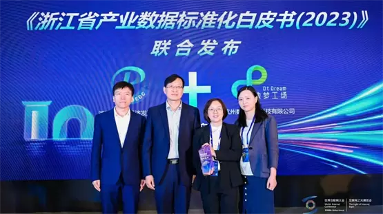 11月7日至10日,2023年世界互联网大会“互联网之光”博览会在乌镇举行。本次活动期间,浙江省数字经济发展中心联合杭州数梦工场科技有限公司(以下简称“数梦工场”)编制的《浙江省产业数据标准化白皮书(2023版)》(以下简称《白皮书》)首次发布。《白皮书》旨在为产业数据标准化工作提供顶层设计及建设指引,助推产业数据价值化改革。