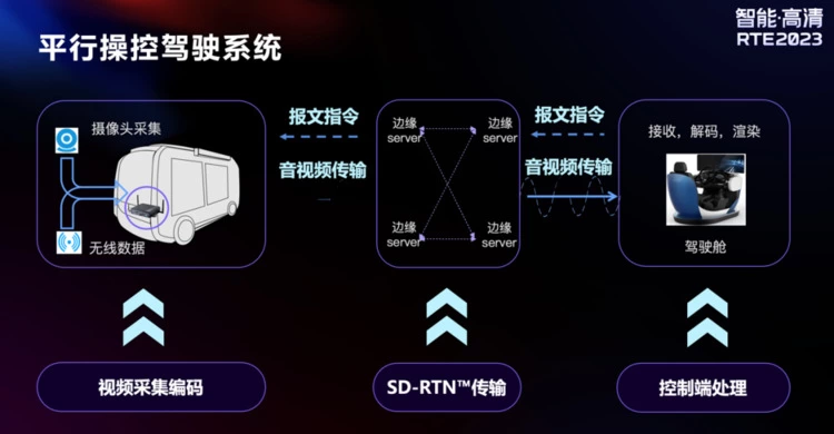 作为虚实互动的场景,平行操控在应用过程中,也需要解决以下几个痛点:一是同城/跨区体验保障难,4G/5G、WiFi和局域网等不同的网络差异大,无线网络可靠性无法保证;二是音视频延时要求高,假如一个无人车行驶速度在15-30km/h,行业里普遍认为端到端延迟要控制在200毫秒以内,某些极端案例要求50毫秒内,甚至还有抗弱网和抖动的需求;三是远程信令控制同步难,为保证车辆安全运行,操控指令与实时音视频传输需做到一致性,信令传输亦要求低延时。