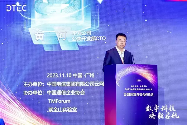 2023中国电信数字科技生态大会,于11月10日-11月13日在广州召开,华为公共开发部CTO黄河、电信系统部副部长毛中军受邀出席云网运营自智合作论坛。