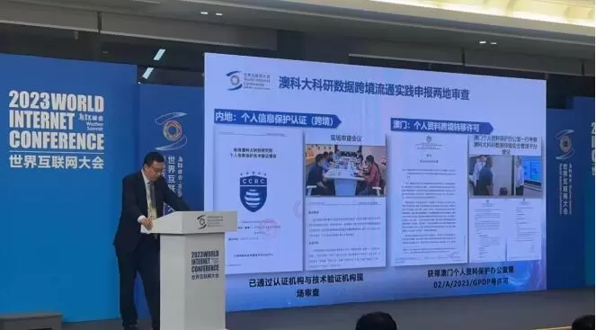 刘东指出,澳门科技大学基于IPv6和数据空间技术构建了科研科创数据流通平台,通过“规则+管理+技术”三位一体的机制,全方位保障科研数据的跨境合规流通。澳门科技大学还特别根据数据跨境传输的场景,选择了适用性和可扩展性更为灵活的个人信息出境认证方案作为路径,在境内向认证主管机构递交了申报,目前已获得认证机构与技术验证机构的现场审查;同时,也向澳门个人资料保护办公室递交了跨境转移许可,并获得通过。