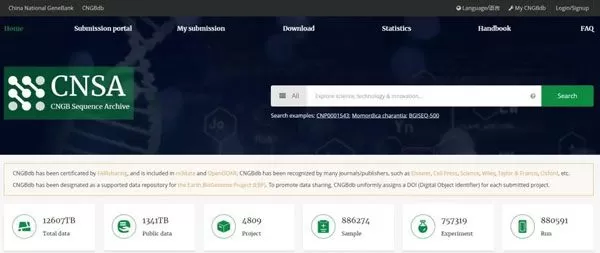 上图为国家基因库生命大数据平台(CNGBdb)
