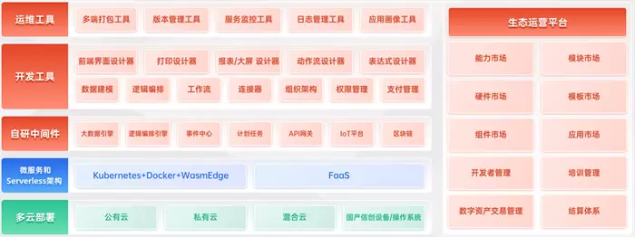 由云畅科技历时9年,自主研发的「万应低代码」,即是一款基于云原生和软件工程的思想和方法论设计的业界领先的模型驱动低代码平台。「万应低代码」是诞生于大量政企数字化商用实战与验证,原子化能力行业领先、技术更底层,平台更贴近国内用户的建设思维习惯,覆盖设计、开发、测试、部署、运维等软件应用全生命周期,在复杂软件应用开发方面,具有显著的优势。并且平台引入大数据分析、AI大模型、AIOT等前沿智能化技术和安全保障技术,支持PB级数据处理,通过多种信创兼容及安全认证,提供更为高效、便捷、安全的扩展开发工具,为企业级应用软件开发注入新的活力。