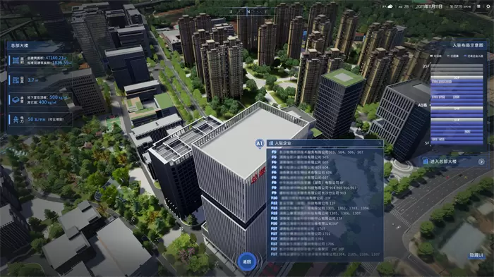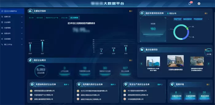 由万应低代码为该园区量身敏捷打造的智慧园区数字可视化系统,从3D建模、国土楼宇、国土资源、企业基础信息、企业经营信息、物联网数据等多方面对园区和企业进行数据整合和分析,通过柱状图、条形图、饼状图等多种呈现方式,形象地展示园区的整体运营情况,并准确地预测发展趋势,便于园区调整发展规划策略。