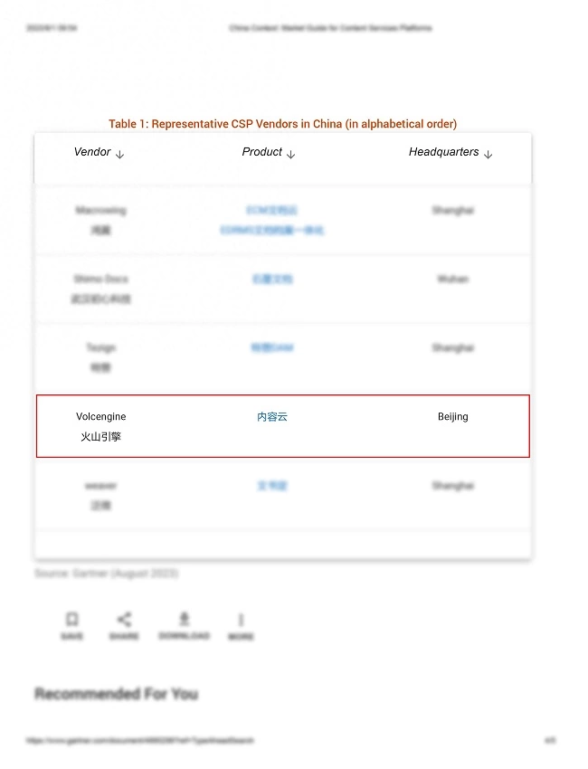 Gartner发布中国首个CSP市场指南,火山引擎内容云登榜