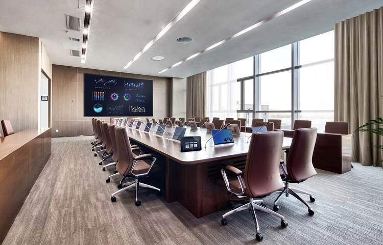 一般来说,中大型空间对设备的音效有着更高的要求,不仅要求扩音性能优秀,更要求能够达到抑制回响、降噪等效果,以保证会议讨论时受众获得更加舒适的收听体验,以及更高效的信息传达。海信100英寸会议电视采用2.1省道独立低音炮设计,搭载Dplby+DTS双音效,无需额外购买音响系统,即可收获身临其境的悦耳体验。