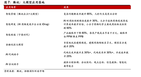 招银国际指出,大模型应用落地,将驱动腾讯云业务收入增长及估值提升,基于领先的数字基础设施、成熟的大模型能力以及丰富的行业应用场景,腾讯在大模型应用落地及商业化方面处于国内领先梯队,企业AI智能化需求有望成为腾讯云业务新的增长驱动力,拉动板块收入和估值提升。