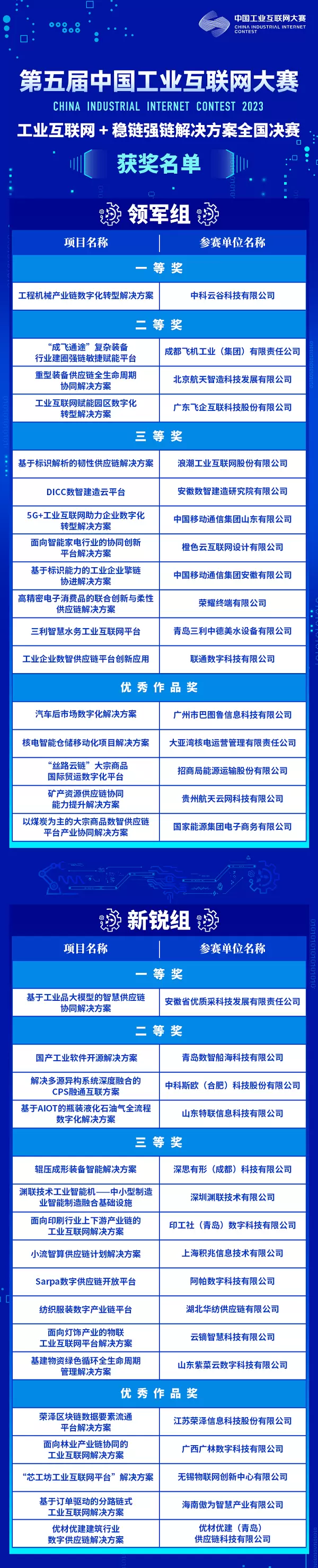 工业和信息化部信息技术发展司两化融合推进处二级调研员谢学科,青岛市工业和信息化局副局长楚宪峰,国家工业信息安全发展研究中心系统所所长陶炜,山东省工业和信息化厅工业互联网处副处长张旭,胶州市副市长、上合示范区党工委委员、管委会副主任周林,青岛市工业和信息化局工业互联网处副处长朱健,胶州市科技和工业信息化局局长周兆和,以及各参赛企业选手、二十大园区牵头单位及所属镇街负责人、青岛市重点企业代表及行业媒体代表出席 “工业互联网+稳链强链解决方案”全国决赛颁奖仪式。