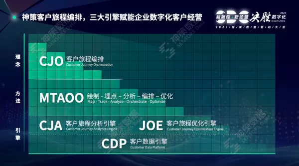 作为国内专业的数字化客户经营软件提供商,神策数据迅速抓住客户经营这一关键机会,提出 MTAOO 方法论、发布三大引擎产品体系,以此推动企业打好客户旅程编排(Customer Journey Orchestration,简称 CJO)这场“战役”。