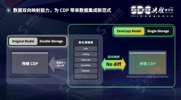 另外,值得强调的是,神策数据全新引入数据双向映射方案,我们希望能利用这一技术方案和「ZeroCopy」理念为 CDP 的数据集成解决方案带来新的范式。目前,在该方案中,我们尽可能地简化了数据导入和导出的过程,实现 CDP 底层的数据表和客户数仓表的双向读写,并且只存储一份数据,从源头上消弭数据 diff,实现真正的无缝链接底层数仓与上层的业务应用。