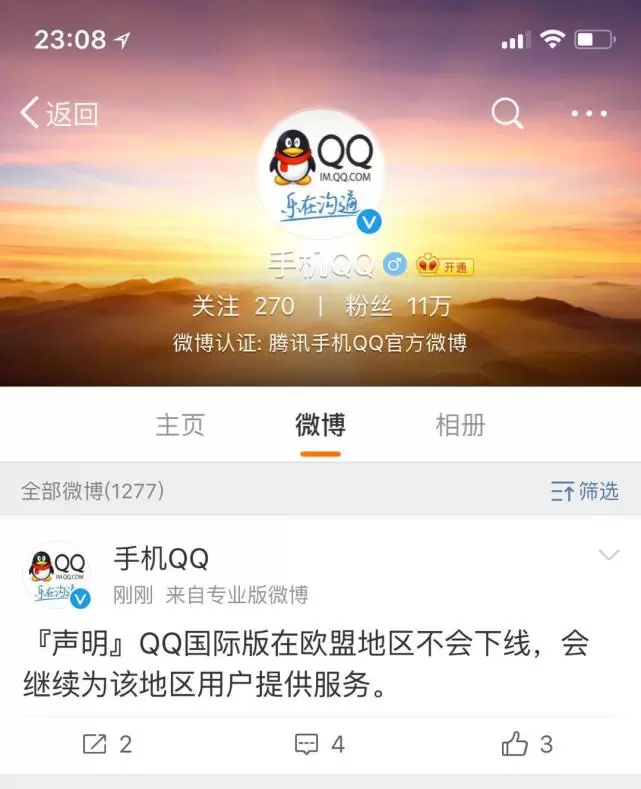 腾讯发布声明辟谣传言:QQ国际版不会在欧盟地区下线