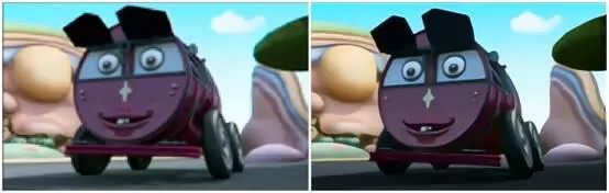 图一 左侧为超分前720P画面,右侧为超分后720P画面