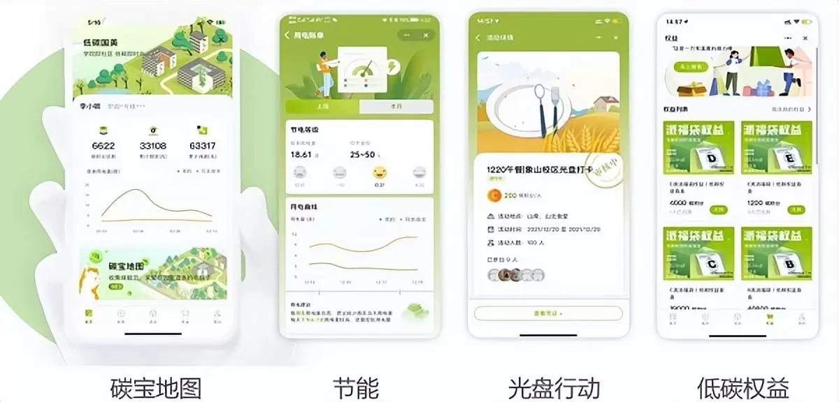 在个人层面,能耗宝主要针对社区、校园等社群组织中的个人,鼓励其参与低碳行为,培养绿色心智。例如,能耗宝鼓励个人在平台中记录并上传自身绿色出行、废弃物回收、光盘行动等低碳行为,积累碳积分并兑换低碳商品,进而形成正向的绿色循环。