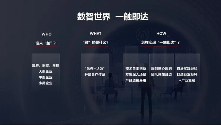 相对乐观的是,“伙伴+华为”正在用成熟的技术、产品、方案,贴心的团队服务,及丰富的转型经验等,让数智化转型变得简单,让每家企业都能“一触即达”智能世界。
